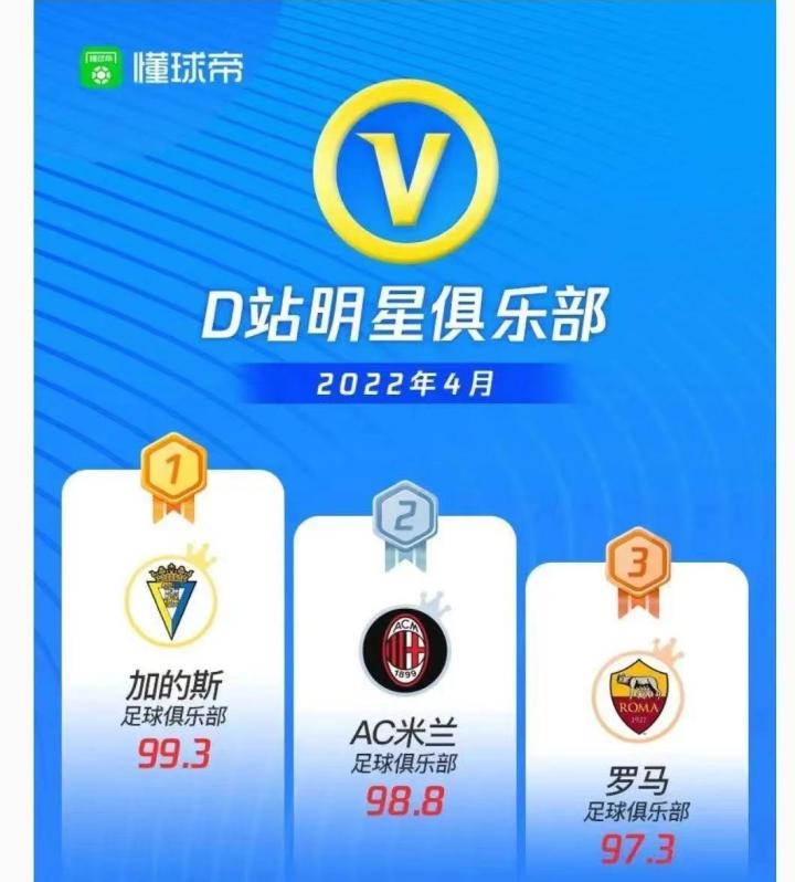 加的斯成为4月懂球帝最具影响力官方帐号