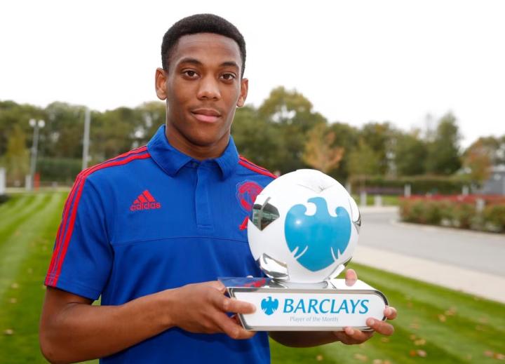2015年9月,马夏尔凭借对阵利物浦时的那一记独闯龙潭赢得了英超月最佳进球的荣誉,而他本人也获得了由球迷的PFA月最佳球员,以及随后含金量更高的、由英超官方评选的九月联赛最佳球员。