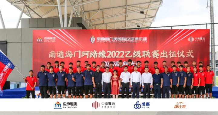 6月28日,南通海门珂缔缘足球俱乐部2022乙级联赛出征仪式在俱乐部新基地举行。南通市体育局副局长张云飞、海门区人民政府副区长施张范、海门经济技术开发区管委会副主任陈爱涛、中南控股集团高级副总裁陆亚行、南通市海门区教育体育局党组成员沈永华、中南置地海门公司总经理缪海峰、南通海门珂缔缘足球俱乐部公司总经理李太镇等领导参加了出征仪式。