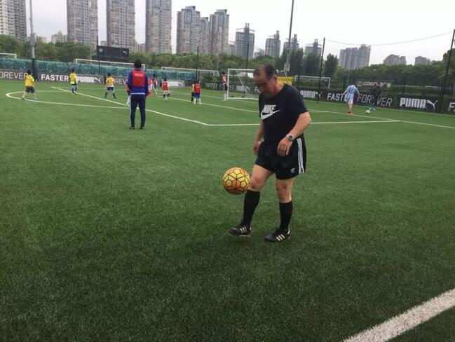 疫情前,每个韩同江还会前往东华警备队,和自己的同学、兄弟一起踢球。上海卢浦大桥附近的湖畔球场,一群平均年龄超过70岁的人还在享受足球的乐趣。