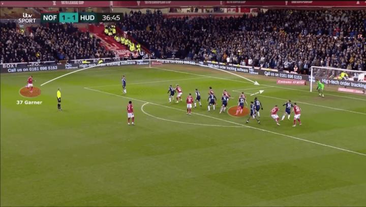詹姆斯·加纳正在迅速成长为定位球专家。他是一个非常有技术的球员,能利用角球和任意球出色地传至禁区。在租借诺丁汉森林之后,他有信心接管所有定位球的任务,在任意球直接射门上也有一脚(如下)。