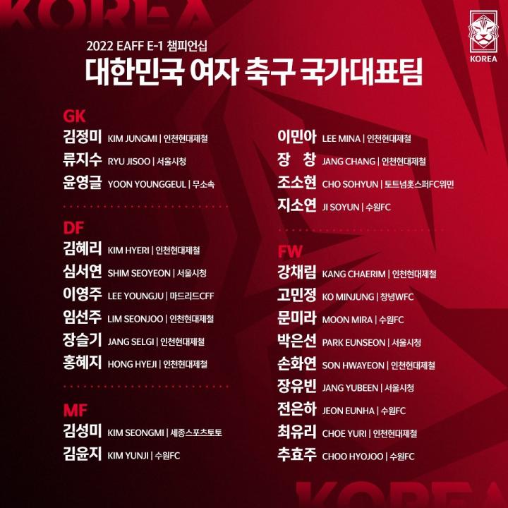 6月30日,韩国女足公布了东亚杯参赛大名单,池笑然、赵昭贤领衔,李玟娥入选。