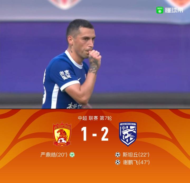 三镇2-1逆转广州,斯坦丘任意球破门,谢鹏飞替补建功