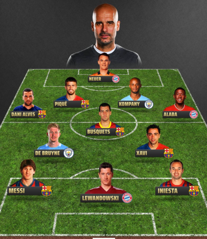 瓜迪奥拉执教巴萨、拜仁、曼城最佳阵容