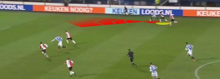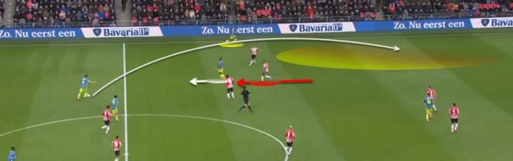 需要注意的另一方面就是马拉恰的接球位置。他总是会接到教练的指示在前场的边路区域接球,但是到了荷兰国家队或转会至更大的球会,他得在球队更强调控球的情况下学会将站位内收。斯洛特上任后,马拉恰已经在这方面有所提升,不过还可以继续打磨。
