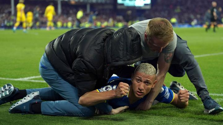 卡尔沃特-勒温的头槌攻门点亮了古迪逊公园的暗夜,里沙利松直接和草皮来了一个零距离贴地飞行。如释重负般肆意绽放的笑容,是右腿内收肌伤势的最好止痛药。