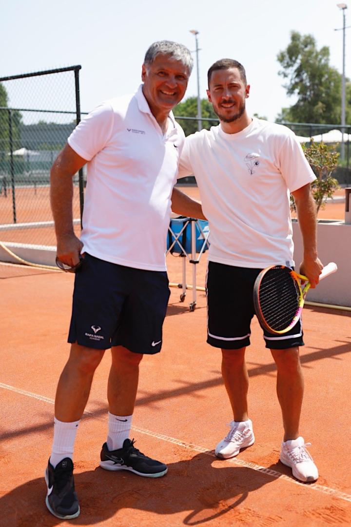 阿扎尔造访纳达尔网球中心,与纳达尔叔叔合影留念LaPulga @懂球帝2022-07-03 12:24皇马球员们都在以不同的方式享受假期,而阿扎尔前往了纳达尔的网球训练场。阿扎尔在近期前往了纳达尔位于希腊的纳达尔网球中心,而目前纳达尔正在伦敦备战温网比赛。在网球中心,阿扎尔遇到了纳达尔的叔叔托尼-纳达尔,两人留下了一张合影。阿扎尔手上还拿着网球拍,看来他对这项运动有着一定的兴趣。展开更多