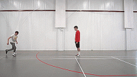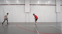 下一步,我们交换一下我们的支撑腿,把球弹起来。