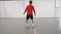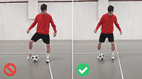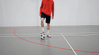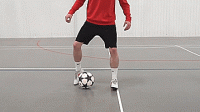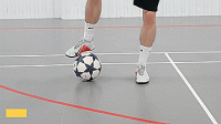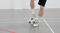 接下来,用我们惯用脚的脚掌将球拉向我们支撑脚的内侧。