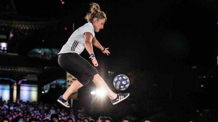下面我们学习一种非标准的方式把球踢起来,就像下面这样。