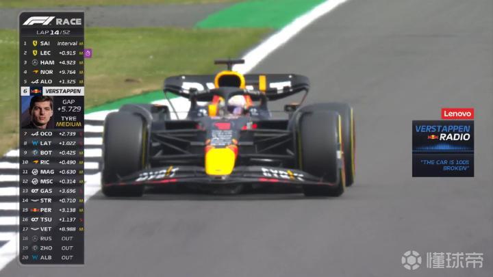 第12圈,维斯塔潘遭遇爆胎!塞恩斯完成反超,维斯塔潘随后立即进站!维斯塔潘出站后排在第6位。维斯塔潘回到赛道后依旧感觉赛车不对劲,他告诉车队赛车100%有受损的地方。