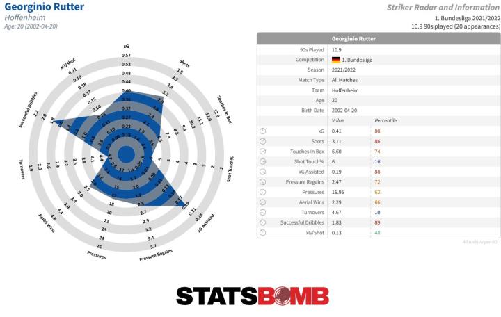 诚然,目前的吕特尔还算不上一位高效的射手,比如本赛季对阵门兴的比赛,他依然会浪费不少得分机会(6射门未能斩获进球),但是他在射门上还是有着潜力的。