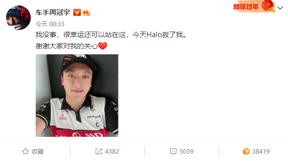 他的安危也牵挂着无数国内车迷的心,不过幸好,在经过全面检查后,周冠宇的身体并无大碍,赛后他还回到赛道和F1总部以及车队汇报情况。同时,他也发博向大家报了平安:“我没事,很幸运还可以站在这,今天Halo救了我。谢谢大家对我的关心!”