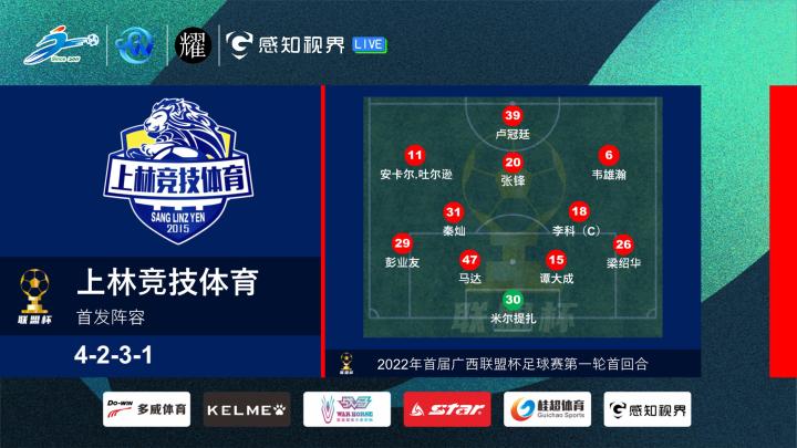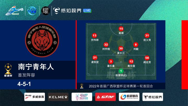本场比赛,南宁青年人助理教练蒙云峰排出451阵型,莫靖单箭头,刘宇翔、刘毅坐镇中路,潘乐童、黄东俊统筹后防。上林竞技主教练李龚排出4231阵型,卢冠廷单前锋,安卡尔、韦雄瀚在两边,马达打中后卫。两支球队均派出了一个相当年轻的首发阵容,蒙云峰、李龚两名少帅的斗法也颇具看点。