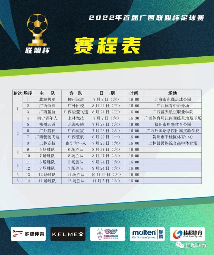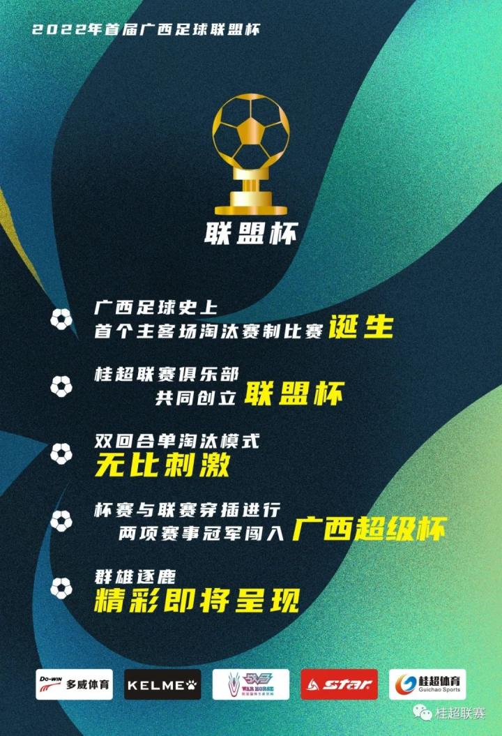 广西联盟杯由今年广西足球超级联赛(桂超联赛)参赛俱乐部还共同创办,是广西足球史上第一个采用主客场淘汰赛制的比赛,与桂超联赛穿插进行,将在南宁、柳州、北海、来宾、贺州多地进行,届时联赛冠军和杯赛冠军将争夺广西超级杯赛冠军,广西联盟杯首轮,两场比赛轰入11球,这些高水平赛事的举办将极大地刺激广西各地足球运动的开展。