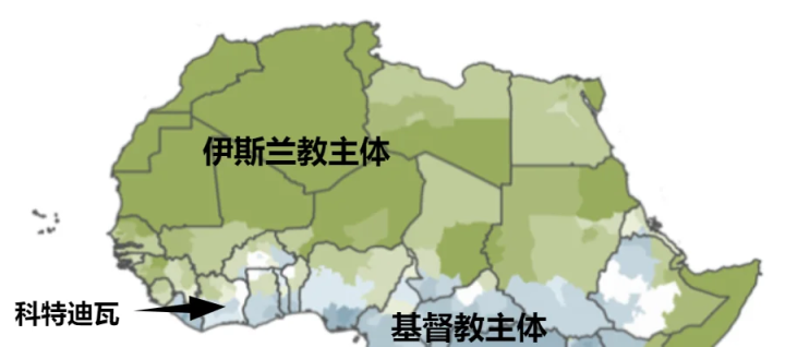 科特迪瓦北部内陆地区受摩尔人的影响,加上殖民初期的法国没有将势力延伸到内陆,因此,科特迪瓦的北方内陆地区信仰伊斯兰教。南北宗教对立,为日后的战争埋下了隐患。