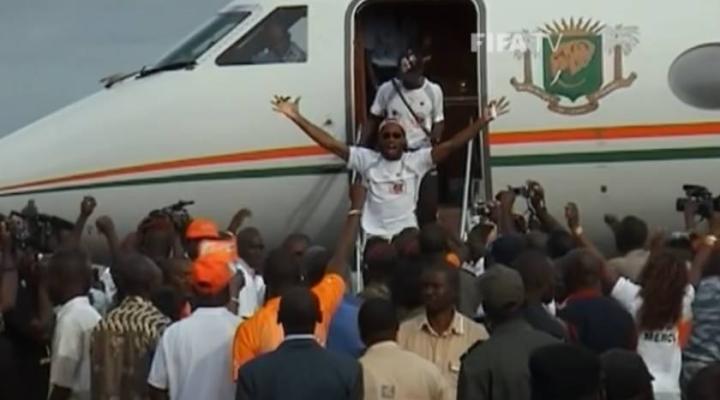 赛后,德罗巴把科特迪瓦电视台的话筒和摄像机拿到更衣室对科特迪瓦喊出了停战的喊话。