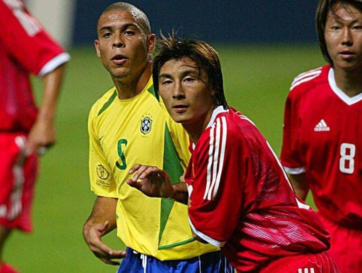 2002年夏天,在米卢的带领下,国足第一次也是迄今为止的唯一一次登上世界杯的舞台,在首场比赛中,孙继海上半场就因伤离场并缺席了余下的全部比赛,国足0:2负于哥斯达黎加,第二场比赛国足0:4输给巴西,提前一轮被淘汰,肇俊哲在比赛中击中门框,最后一轮,中国0:3负于土耳其,杨晨击中门框,与进球无缘。国足小组赛三场皆负,一球未进,让“赛前进一个、得一分、赢一场”的目标成为了笑柄。
