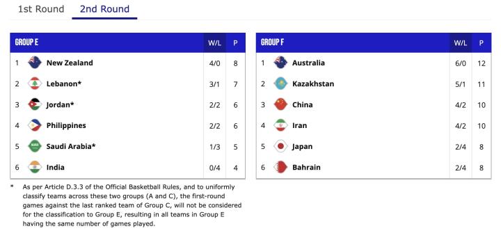 由12强参加的世预赛亚大区第二阶段的复赛,将由A组和C组的前三名构成E组,B组和D组的前三名构成F组。