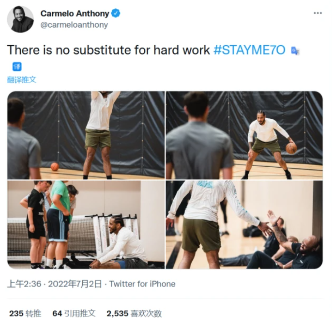 但安东尼自己还不想离开。昨天,安东尼在个人社媒账号上晒出了自己的训练照,并写道:“力量就看你的决心有多大。”,证明渴望再次回到NBA征战的决心。