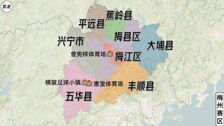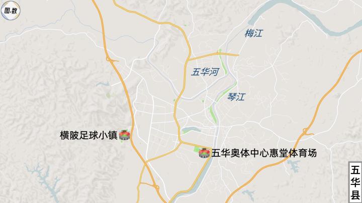 梅州赛区的另外两块比赛场地都在五华县,五华河与琴江汇合后就成了梅江,而五华县最大的体育场就是距离琴江仅有几百米的惠堂体育场,其纪念的是“亚洲球王”李惠堂,他出生在港岛,但祖籍在五华。