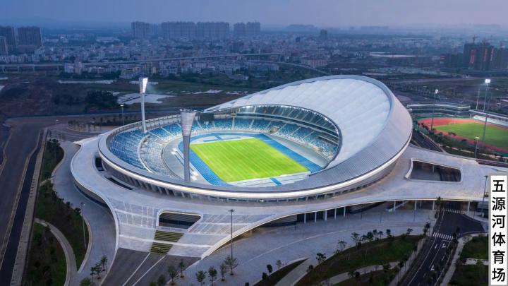 五源河体育场的设计方是德国gmp公司,他们突破了传统的对称布局,采用西高东低的看台选型,设有雨篷的主看台面朝东北方向的大海,不仅遮阳避雨,还可以让观众享受到独一无二的开阔视野。