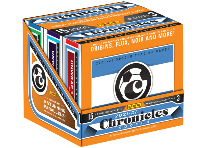 今年的2021-22足球编年史是系列第三款卡盒,根据Panini公布的名单和配置上来看,加入的品牌(系列)阵容可谓是空前强大,Base名单中加入的品牌(系列)有14个、物料名单有8个、签字名单则为6个,独立品牌共18个。其中Base品牌的Playoff、Origins、Flux都是首次加入,签字品牌的Noir也是首次加入,有关编年史品牌的详情请参阅之前我们的介绍(回顾:21-22足球编年史 品牌详解)。