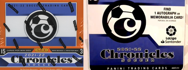 2021-22足球编年史Hobby每箱共12盒,每盒分为英超、西甲、意甲3个Mini小盒。每个Mini小盒内15张卡,保1张签字或物料,以及3张平行;即每盒共45张卡,保3张签字或物料,以及9张平行。官方单盒售价为225美元,国内落地价在2000元左右。意甲盒因为印刷事故导致部分品牌(系列)的银折被印制为了无编蓝折(回顾:Panini印刷事故),英超盒、西甲盒无影响。