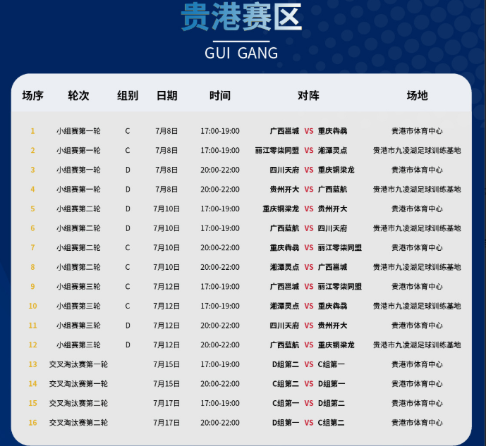 7月10日,贵港赛区C组、D组将进行第2轮较量,具体对阵安排为: