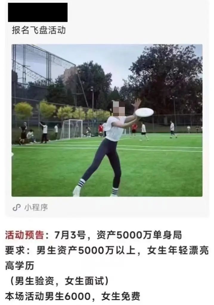 近期,就有人把玩飞盘,搞成了变味的相亲活动,要求男方个人资产必须要在5000万以上,而女方必须是高学历、要年轻漂亮。完全脱离运动的本质意义。