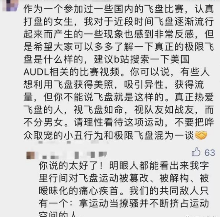 这种恶俗的“浮夸风”和“色情风”刮向飞盘运动后,让人只觉得乌烟瘴气、乱七八糟、神马玩意。对此感到不满和愤怒的,不仅仅是足球迷。一些真正热爱飞盘这项运动的女性,也表示反感和不可接受。