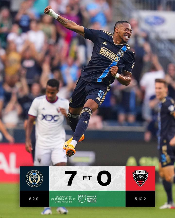 费城联合7-0大胜华盛顿特区联,创MLS历史最大分差