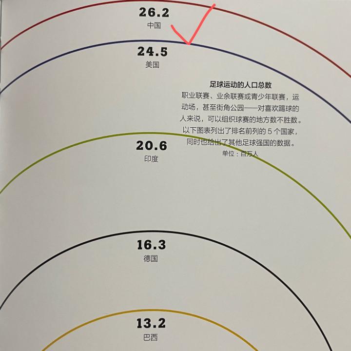 原来我国的足球人口世界第一,远超德国和巴西。图片出自[英]约翰·安德鲁斯《足球信息图》。