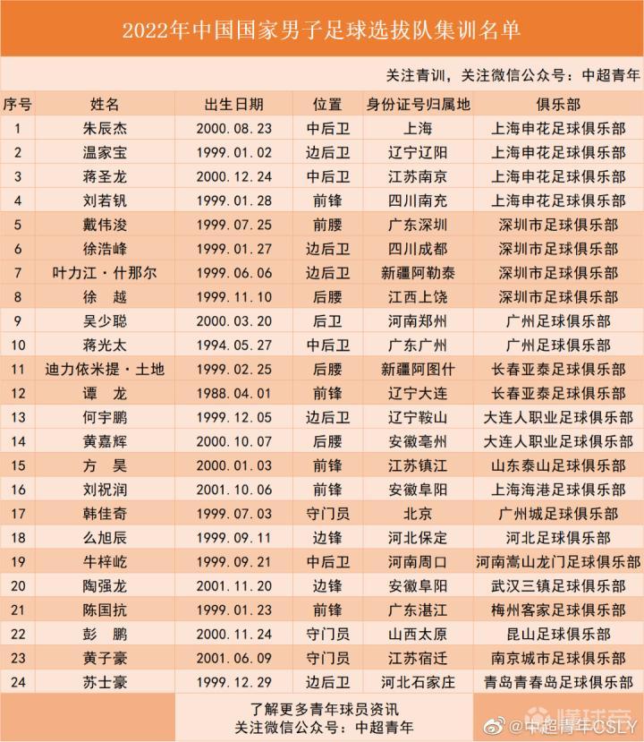 【国家男子足球选拔队东亚杯名单:U23国家队为主体,申花、深圳各4人入选】