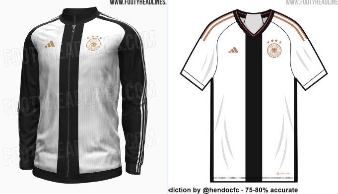 这设计如何?德国队世界杯外套和球衣谍照流出:黑白金配色骆驼飞鸟鱼刺 @懂球帝2022-07-10 07:31德国队将参加年底的卡塔尔世界杯,知名运动装备网站“Footyheadlines”报道了德国队世界杯时外套和球衣的谍照,从网上流出的谍照来看,德国队选用黑白金配色。从网上流出的外套谍照来看,德国队世界杯期间所穿的外套由阿迪达斯采用现代化设计,采用白色底色,黑色搭配,并且胸前用非常有金属感的金色来进行装饰。除了外套之外,“Footyheadlines”表示,德国队在世界杯时的球衣也采用相似的颜色搭配。展开更多