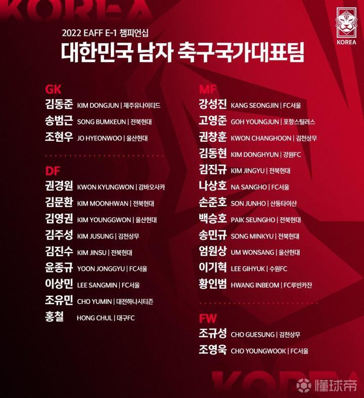 韩国东亚杯26人大名单:孙准浩入选,权昶勋、白昇浩在列