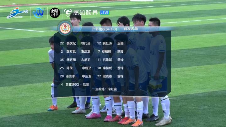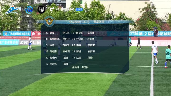 广外附校主教练滾红富排出433的首发阵容,李佳威、石雄斌、梁嘉泰顶在锋线上,队长黄政涛在后腰位置把控中场节奏,这是一个相当年轻的00后阵容。北海极驰主帅尹优优排出343阵型,又有丰富职业联赛经验的队长李民辉以及马冬南坐镇后防,江磊、赵书敏、杜泽鑫、韦霖、俞浩天首发,年龄结构搭配合理,经验丰富。