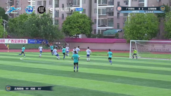 (第67分钟,北海极驰在广外门前打出精妙配合,替补上场的99号阿姆左脚劲射破门)