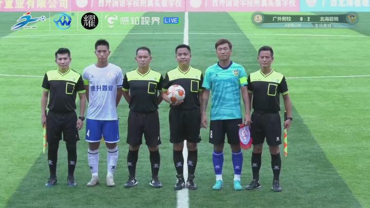 比赛开始,北海极驰主动进攻,30号杜泽鑫在左路非常活跃,数次突破送出威胁传中,11号奴提的小角度攻门也很有威胁,13号江磊的倒钩打门也很精彩。广外附校也打得积极主动,李佳威、梁嘉泰都拿到过很好的进攻机会。上半场双方互有攻势,0-0进入中场休息。