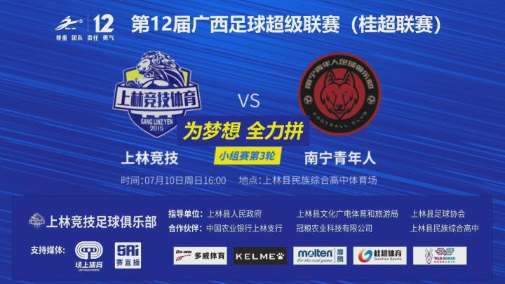 7月10日16时,桂超联赛第三轮另外一场比赛在南宁市上林县民族综合高中体育场举行,上林竞技坐镇主场迎战南宁青年人,这是7天内两支球队的第二次碰面,联盟杯首轮,双方在青年人主场战成1-1,这次主客易位。