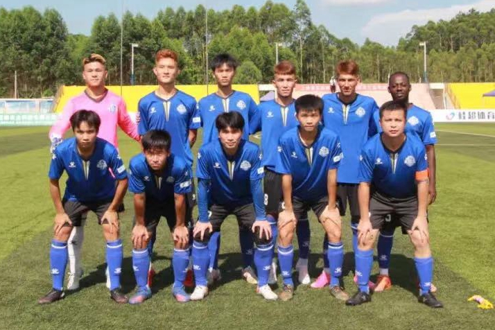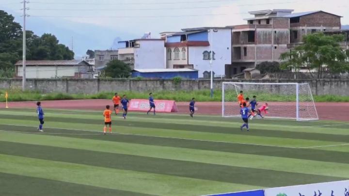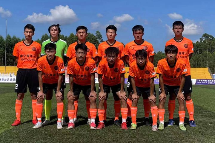 (南宁青年人攻到前场,13号贺伟祥长传禁区,3号潘乐童冲顶破门)