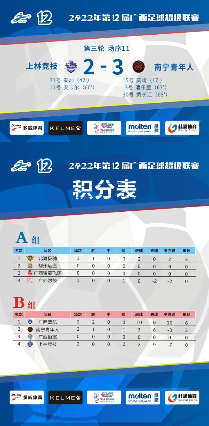 耀武酒肆工作室7月9日——10日,2022桂超联赛第三轮战罢两场,北海极驰反客为主击败广外附校,南宁青年人和上林竞技上演进球大战,两支客队均全取三分。