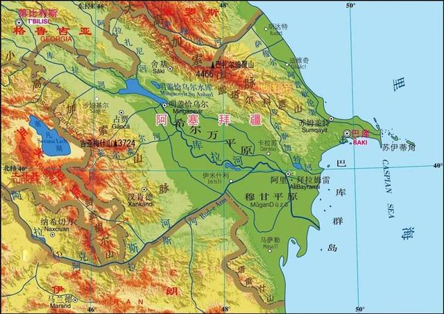 阿塞拜疆位于亚欧交界处大高加索山脉的东南部,东临里海,南部与伊朗接壤,北邻俄罗斯,西部与格鲁吉亚和亚美尼亚相邻。东隔里海与哈萨克斯坦,土库曼斯坦隔“海”相望。