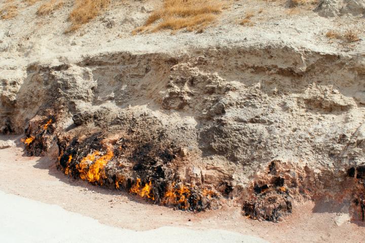 伊朗高原北部靠近高加索山的部分地区,因自然原因外泄的天然气遇火燃烧,形成了类似于火焰山一般的火焰。因此,该地名被命名为阿塞拜疆地区。