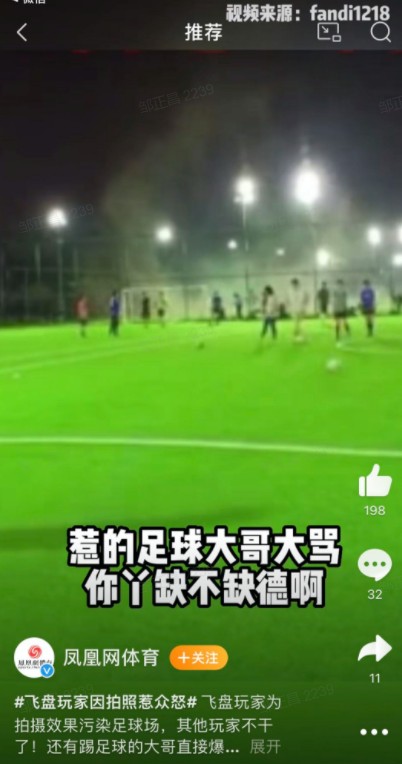 此前引发争议的足球场飞盘玩家放烟雾事件