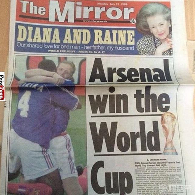 阿森纳历史上的今天:1998年的今天,法国队夺得...北伦敦小酒馆 @懂球帝2022-07-13 17:36阿森纳历史上的今天:1998年的今天,法国队夺得了世界杯的冠军。当时镜报的头条是“阿森纳夺得了世界杯”!(此时亨利还没有加盟阿森纳)展开更多