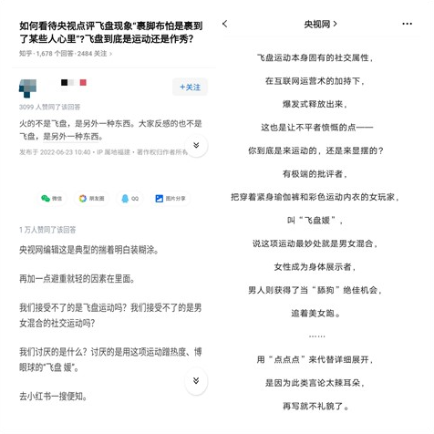 右边是央视网对飞盘运动的评价