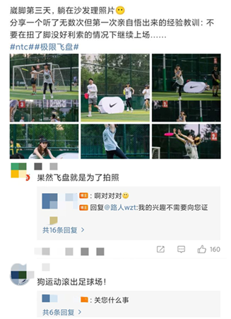 围绕飞盘到底应不应该用足球场,飞盘场上出现的一些乱象,飞盘的基层消费在中国为什么比足球还火爆等问题,以及延伸出来性别问题、社会问题,各路资深媒体人甚至官媒都纷纷下场参与讨论。