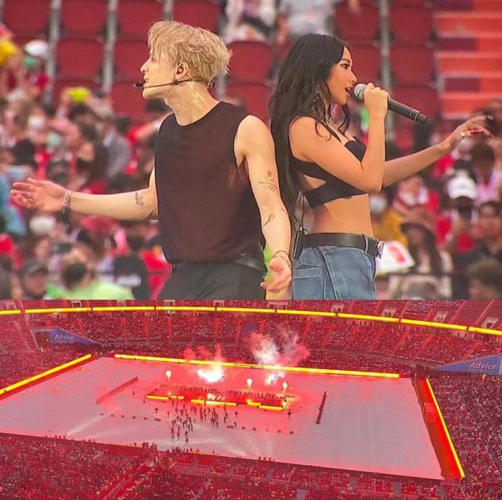 (王嘉尔与韩国女歌手Jessi在2020年KBS歌谣大祝祭的合作舞台,在YouTube播放量超过7300万。)
