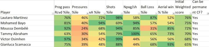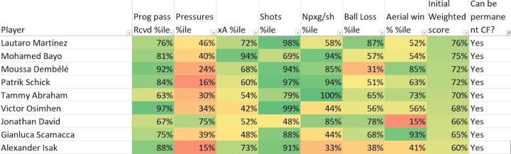 如果你已经看过此前的中场、右后卫和右边锋那几篇文章,你就知道我已经好几次以这样的方式筛选出目标球员了。本文的重心会放在几名候选球员身上,所以这部分就说得简单些。